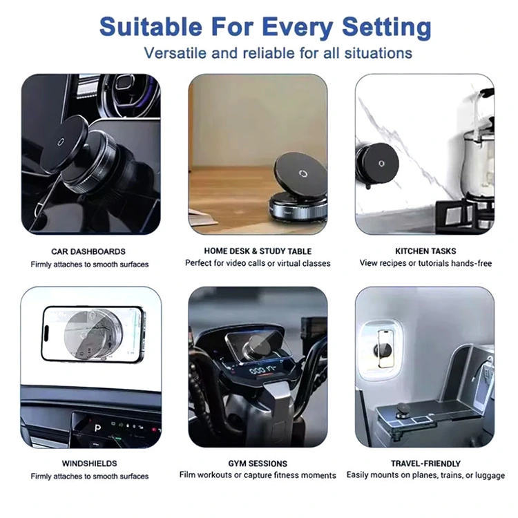 Магнетни усисивач: Носач за телефон у аутомобилу се причвршћује на стакло, инструмент таблу или глатку површину вашег возила брзим окретањем ради чврстог приањања – није потребан алат. Не причвршћујте прстен на силиконске, кожне или неравне навлаке за телефон. Возите се грубим улицама и оштрим скретањима без бриге, са телефоном безбедно причвршћеним, држећи очи слободним да се фокусирате само на пут испред вас.