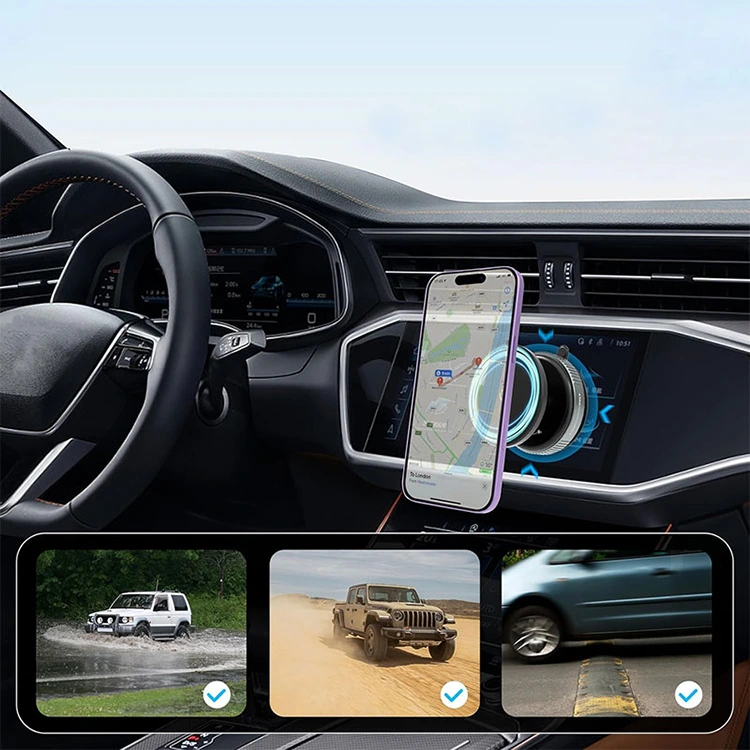 Најшира компатибилност уређаја: Наш носач за телефон у аутомобилу је компатибилан са најновијим моделима иПхоне-а (16/15/14/13/12) и свим уређајима компатибилним са МагСафе-ом. За уређаје који нису МагСафе, укључен је магнетни прстен високе чврстоће за додатно приањање. Са или без навлаке за телефон, ваш телефон се одмах причвршћује једном руком. Компатибилан са већином модела аутомобила, овај прилагођени носач за аутомобилски телефон нуди безбедну инсталацију без напора за модерне возаче.