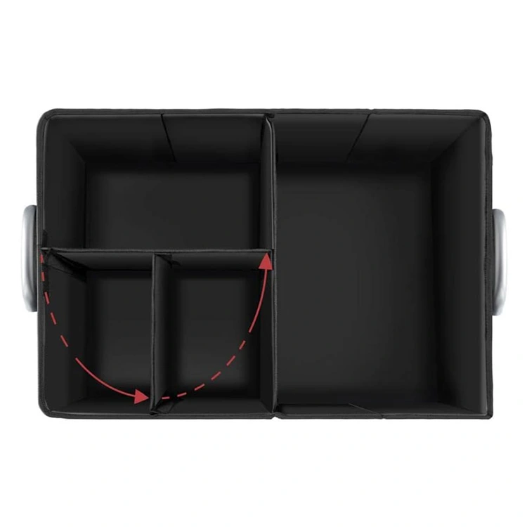 **Чврсте дрвене преграде** Склопиви организатор за кола има чврсте дрвене преграде умотане у тканину Оксфорд 600Д која је отпорна на хабање, водоотпорна и лако се чисти. Поклопац, спољни зидови и постоље су направљени од 2,5 мм средње густине влакнасте плоче и бисерног памука, додајући озбиљну стабилност и носивост.