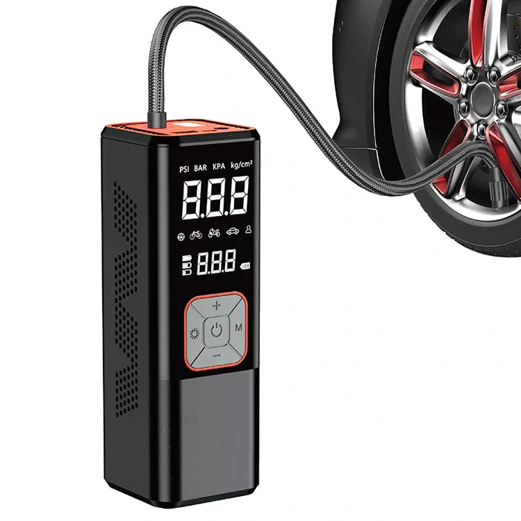 Видљивост: Преносиви ваздушни компресор има уграђено ЛЕД светло на врху, пружајући осветљење током ноћи или у хитним случајевима.