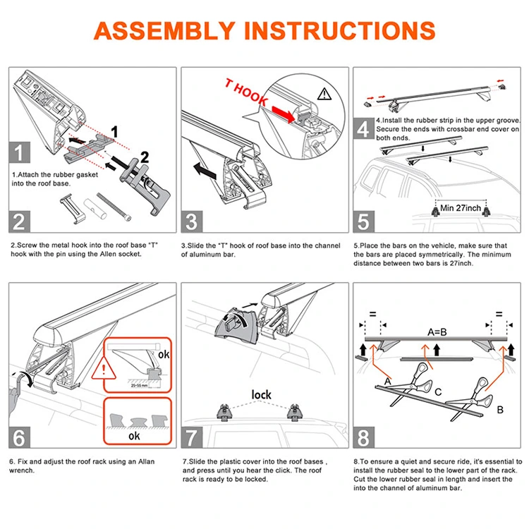 Ове попречне шипке кровног носача су једноставне за инсталацију: шестоугаони кључ је укључен за 10-минутно подешавање; приручник са илустрацијама корак по корак.